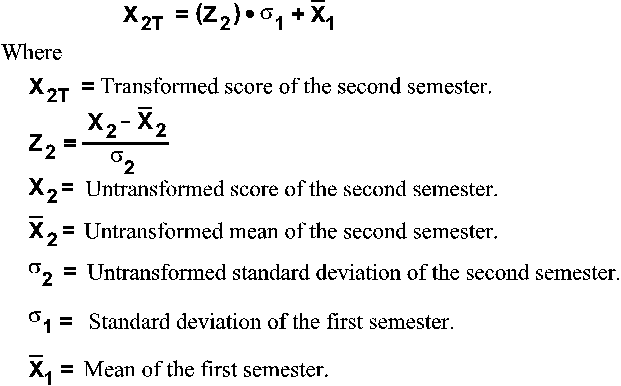 As indicated earlier, the effectiveness of different media for teaching was tested through the performance of the students on the common final examination. The data were collected for two semesters. In order to incorporate both semesters' data, the second semester (spring) scores were transformed through the z-score, before being lumped with the first semester (fall) scores. The transformation was done in the following way: