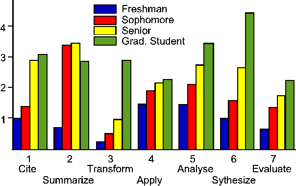 A first step in the development of the form involved the transformation of categories in Bloom's Taxonomy from terms descriptive of cognitive behavior into descriptions of items which could be objectively observed in a written report. Thus, "knowledge of specific facts" became "cities specific facts," the inclusion of a graph is accepted as evidence of the ability to translate information from one form to another, and so on.
