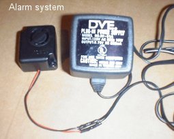 Radio Shack 273-079 12VDC Piezo Siren ($4.99) and an AC to 9 volt